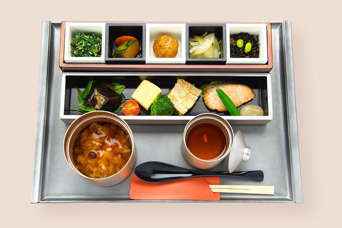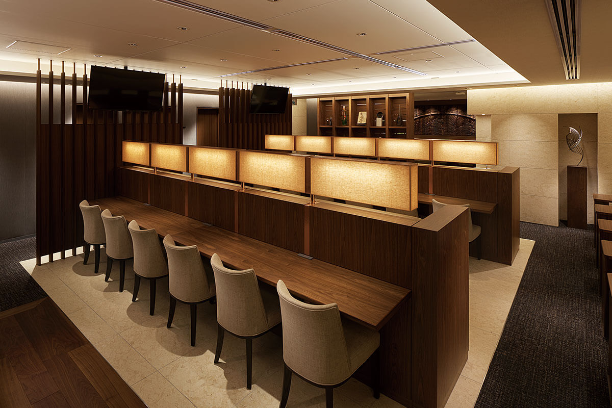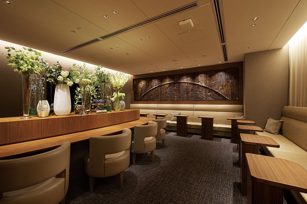 ⼈間ドック、レディースドック、プレミアムドックをご受診いただいたお客様専⽤のラウンジです。椅⼦席とソファー席のふたつのゾーンをご⽤意して健診後のお⾷事を召し上がっていただきます。ミールプロデューサー堀知佐⼦さん監修による特別メニュー「身体にやさしい薬膳ごはん」は、薬膳の知恵を活かした安⼼・安全な⾷材によるヘルシーメニューです。食後のフレッシュハーブティーや黒糖生姜アイス、スモークミックスナッツも好評です。