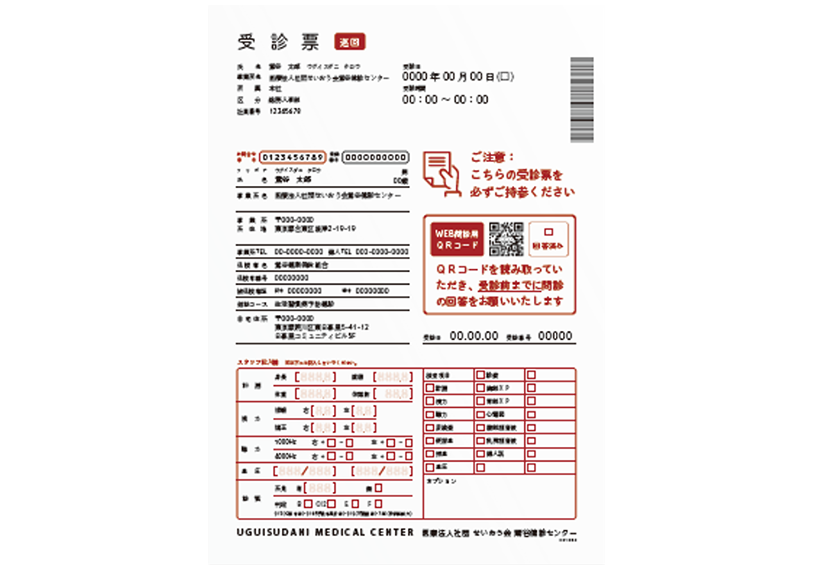 ご予約日時を記載した受診票を作成します。部署ごと、保険番号順などご希望に応じた仕分けをして発送することもできます。