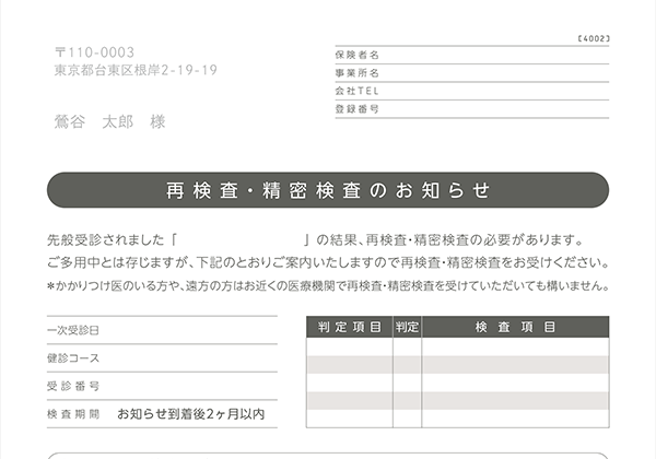 再検査、精密検査が必要な対象者にはダイレクトメールをお送りします。